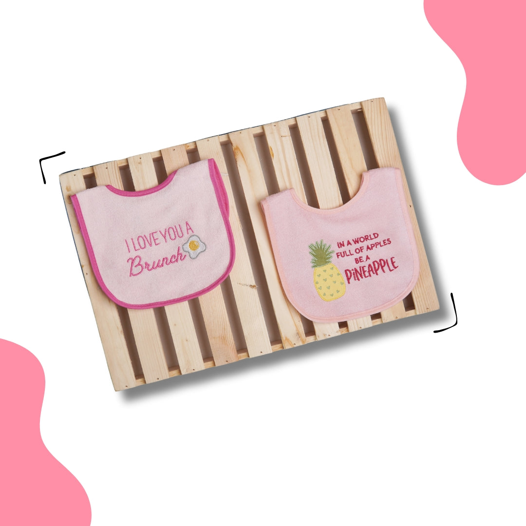 Brighten up your baby’s mealtime with this delightful set of 2 Brunch and Pineapple bibs, combining humor and style while keeping them clean!